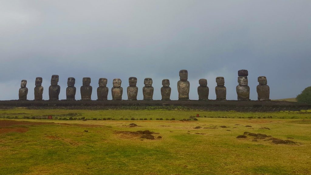 - Mais à frente encontram Ahu Tongariki, o mais conhecidos moais (que estão fila, de costas para o mar)