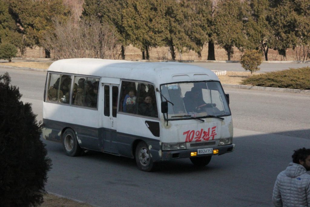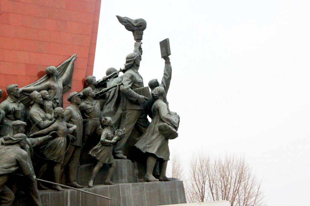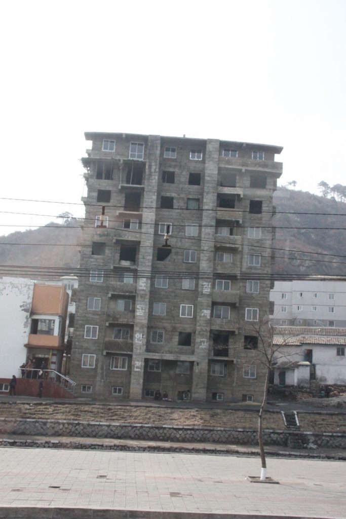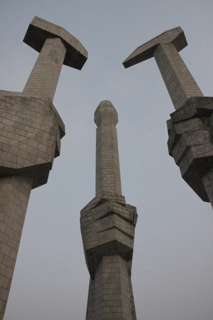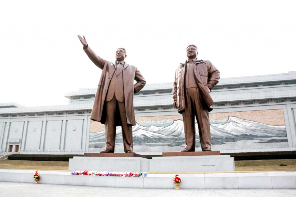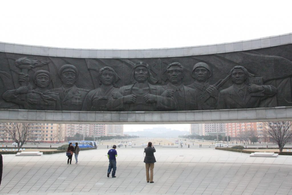 2 – A primeira coisa que nos mostraram foram os estátuas dos Grande Líderes de 20 metros de altura (Kim il Sung e Kim Jong il) acenando para o povo que tanto confia neles. As regras foram ditadas: não se corta nenhuma parte das estátuas nas fotos, não se tiram fotos de membros oficiais da festa, não se tiram fotos de pessoas a trabalhar ou edifícios antigos e todos nós deveríamos ir em grupos de 10 pessoas, fazer uma vénia perante os Grande Líderes, com nossas camisas ou casacos fechados e mãos ao longo de nossos corpos. Ao lado das estátuas foram construídas algumas construções para nos mostrar quão grande e poderosa é a Coreia.